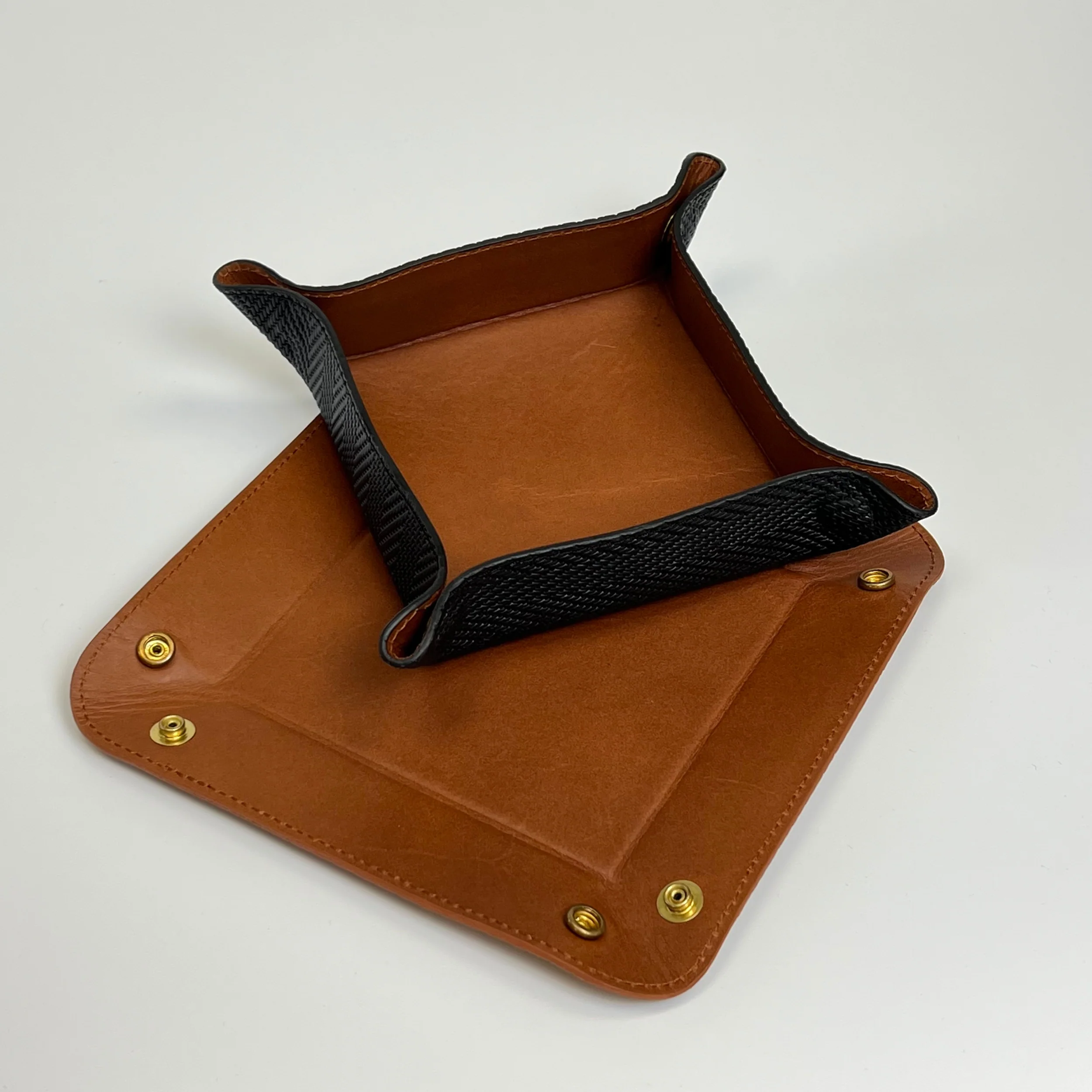 This American-made leather valet tray is crafted with mordacai patterned stamped genuine leather, giving it a luxurious yet hard wearing appearance. Perfect for organizing keys, wallets, jewelry, and more - its sophisticated yet practical design ensures your belongings stay safe and secure.