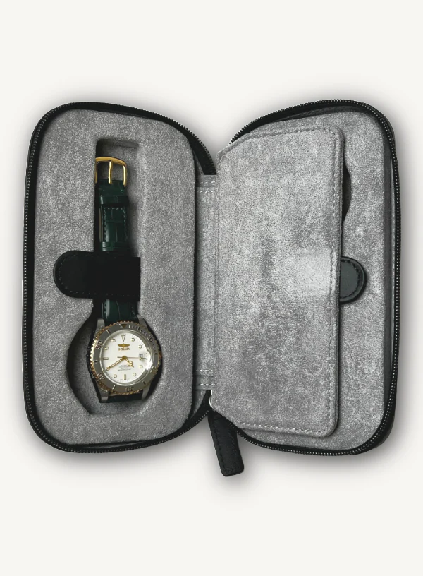 Black Zip Around Watch Case | Grey Lining